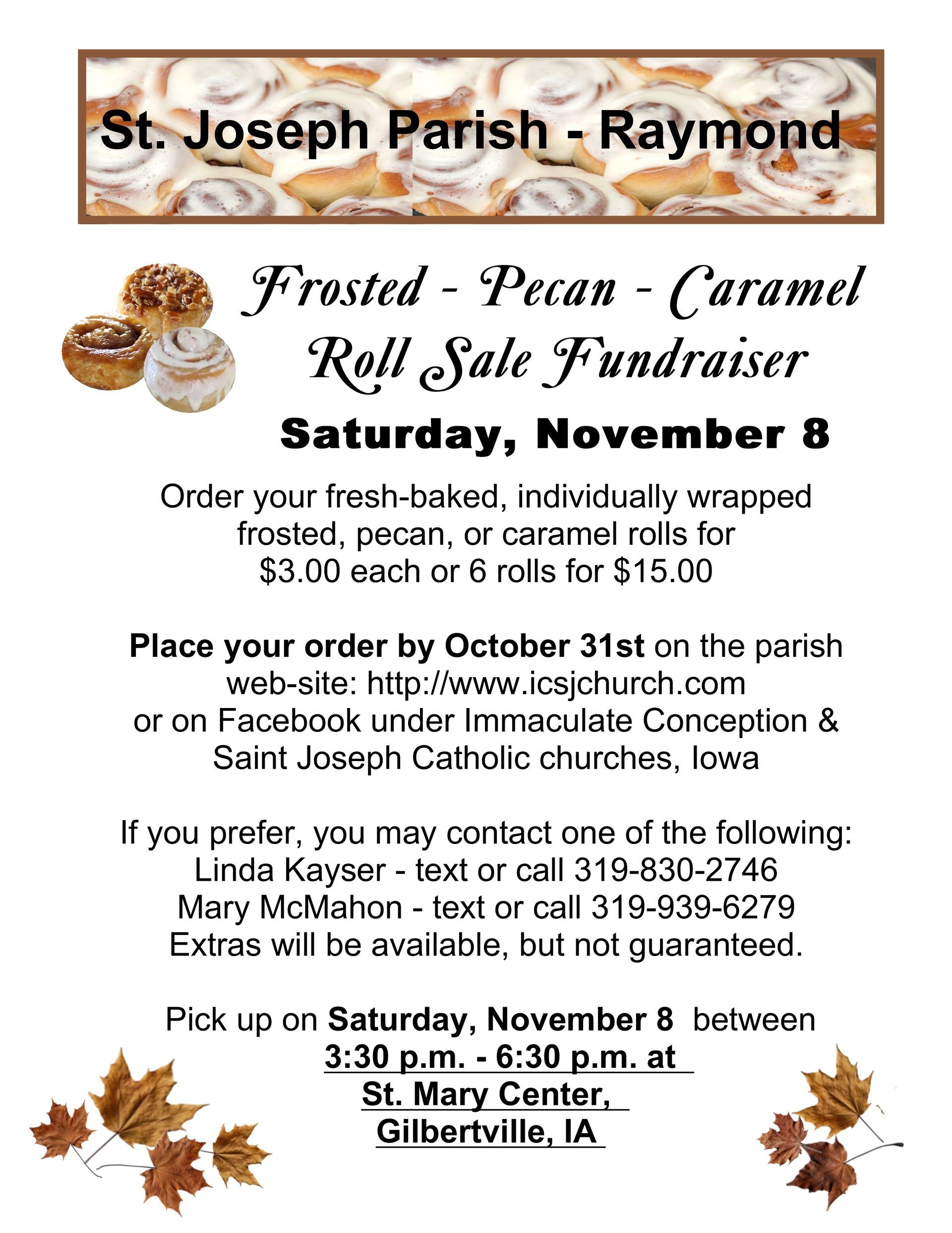 CLICK HERE TO ORDER ROLLS FOR ST. JOSEPH PARISH ROLL SALE - Deadline to order is October 31st. Pick up your order Saturday, Nov 8th 3:30-8:30pm at St. Mary Center, Gilbertville